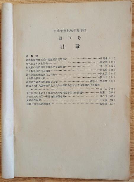 1963年10月1日,《东北重机学院学报》创刊号出版。发刊词中提到:学院部分教研室和绝大多数教师是由哈工大迁来的,他们进行的科学研究工作继承和发扬了哈工大科研和生产、教学相结合的传统。创办学报的目的是为了巩固科研成果,向我国学术界汇报情况、交流经验,也为了活跃学院学术氛围,吸引更多教师积极开展科研工作,掌握科学方法,提高科学水平。