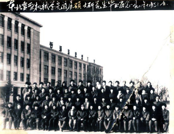 1978年全国恢复研究生招收制度,1981年1月1日我国正式实行学位制度。1982年8月9日,学院第一次为21名研究生授予硕士研究生学位。下图为1981年12月31日,东北重型机械学院首届硕士研究生进行毕业合影。