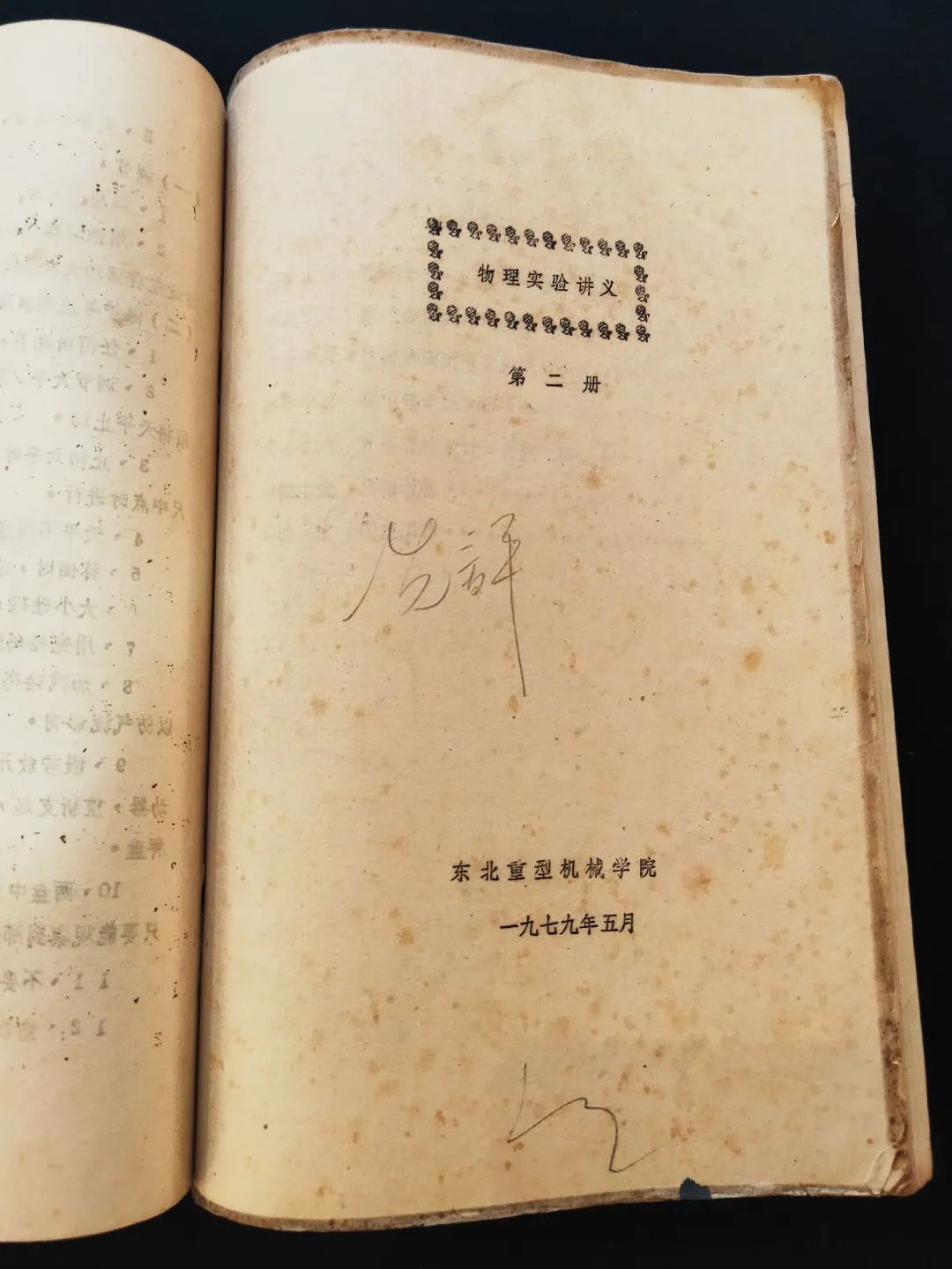 这是东北重型机械学院时期的《理论力学习题集》和《物理实验讲义》,为冼爱平校友所捐赠。
