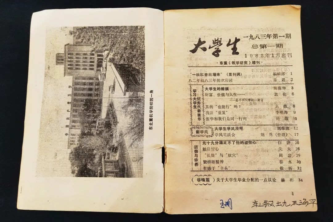 这是东北重型机械学院《教学研究》增刊——《大学生》杂志的1983年第1期和第2期,为王海平校友所捐赠。
