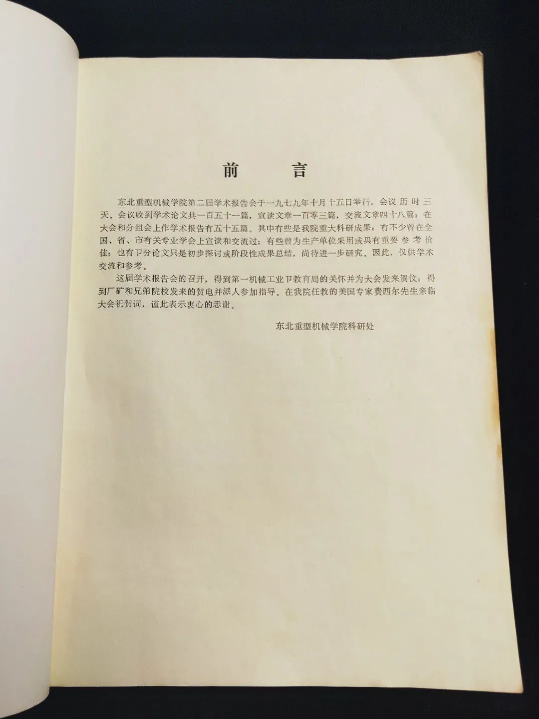 这是东北重型机械学院第一届科学技术报告会《参会论文集》。