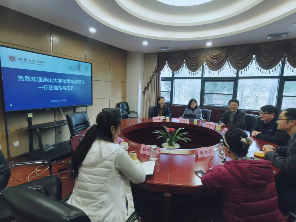 3月17日上午,调研组来到西南大学档案馆调研,西南大学档案馆馆长窦运来、副馆长郑劲松等热情接待了调研组一行。双方就档案数据安全、档案管理系统建设、数字档案馆(室)网络架构、RFID技术等问题进行了深入交流。