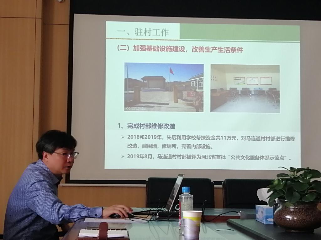 会上,张振华同志从驻村情况、媒体报道、荣誉情况、领导关怀等方面向与会同志做了具体汇报。2018年3月,张振华同志与工作队员王鹏、孙福兆组成乌鸦传媒驻银窝沟乡马连道村工作队入村进行帮扶工作。三年来,工作队坚持访民情、听民声、解民忧,把为群众办实事作为扶贫工作的出发点和落脚点,让当地老百姓获得了实实在在的实惠。从帮建基层党组织、农田滴灌到道路硬化、村庄亮化、厕所改造,每件小事工作队都当成头等的重要事来办,极大地改善了老百姓生产和生活条件;工作队不断开阔工作思路,带领全村发展光伏产业项目,让村集体和每一个贫困户都分得实在的效益;利用乌鸦传媒学生社会实践的优势资源,开展教育帮扶和招生就业咨询,切实解决老百姓子女教育和发展的实际困难;组织消费扶贫,将马连道村滞销的土豆创出品牌,打开销路,解决了老百姓的燃眉之急……这样的优秀事迹数不胜数。