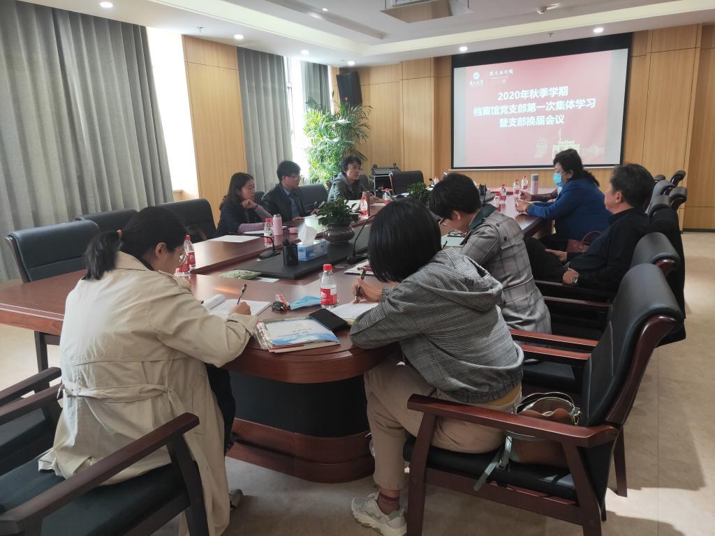 10月15日下午,档案馆党支部在校史馆会议室召开2020年秋季学期第一次集体学习暨支委换届会议。张振华馆长、柯铁军副馆长以及全体党员同志参加会议。会议由支部书记张振华主持。