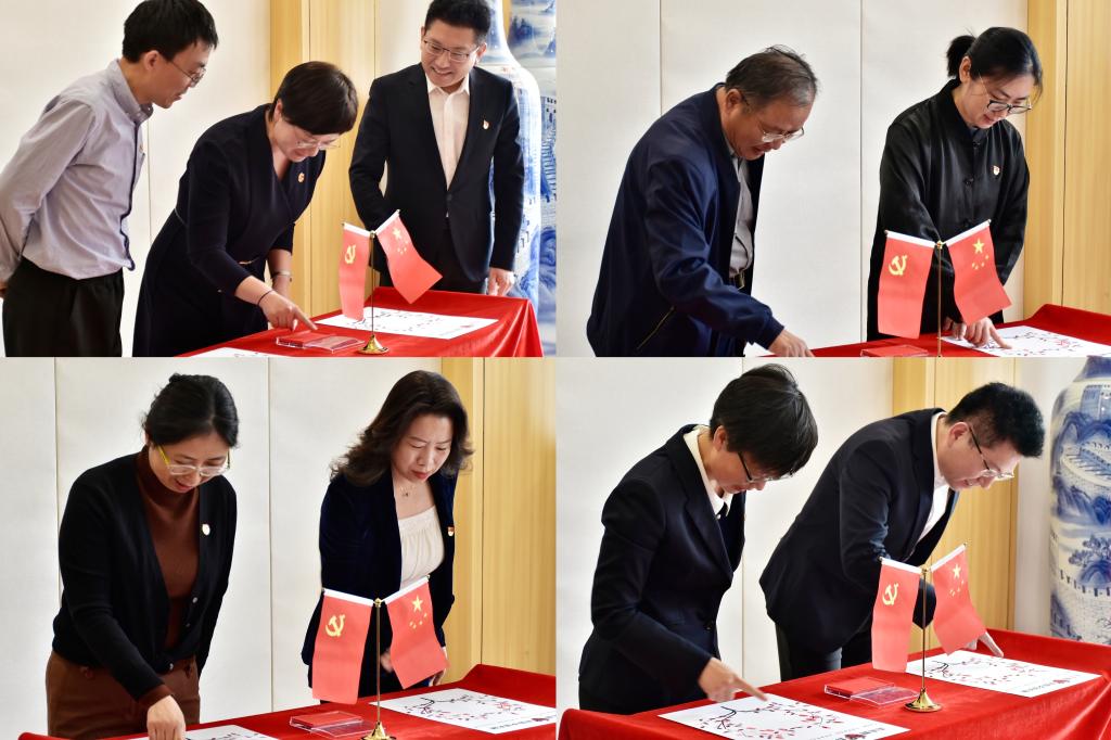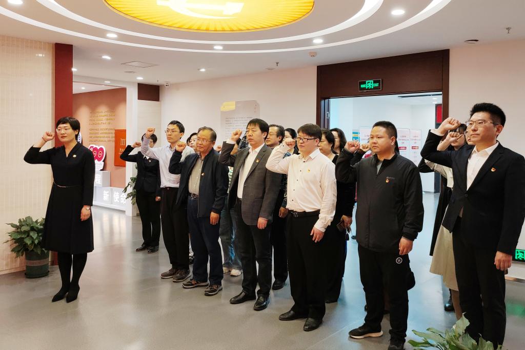 “我志愿加入中国共产党,拥护党的纲领,遵守党的章程……”,全体党员面向鲜红的党旗,高举右拳,庄严宣誓,铿锵的誓言表达了同志们对党最强烈的热爱与敬意、最坚定的信仰与忠诚。