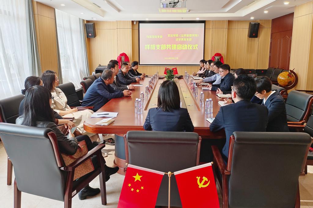 为深入开展学习贯彻习近平新时代中国特色社会主义思想主题教育,充分发挥基层党建在业务提升、协同育人、创新发展等方面的引领作用,档案馆党支部与文法学院(公共管理学院)法学系党支部联合开展样板支部共建专项行动。5月11日下午,样板支部共建启动仪式在学校校史陈列馆会议室举行,文法学院(公共管理学院)党委书记甄红军受邀参加,档案馆党支部书记郭沛主持仪式。
