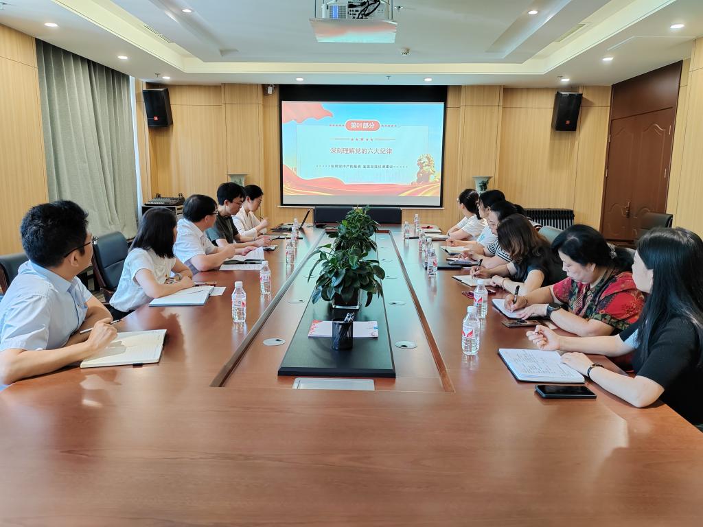 7月3日上午,档案馆党支部书记郭沛在校史馆会议室为支部全体党员讲授党纪学习教育专题党课。