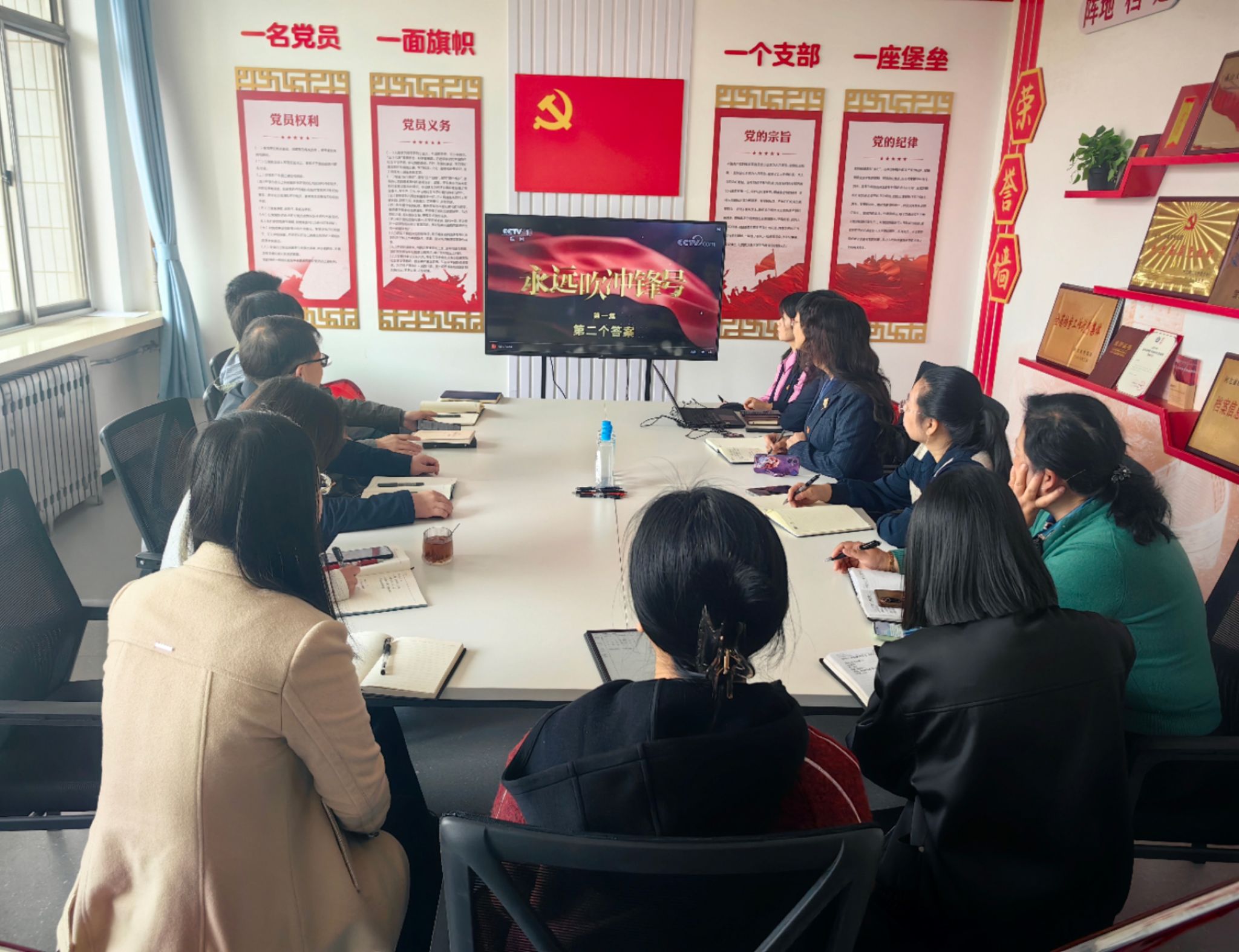 4月11日,全体党员在四楼会议室集体观看视频《永远吹冲锋号》第一集《第二个答案》。勇于自我革命是中国共产党最鲜明的政治品格,全面从严治党是新时代党的自我革命的伟大实践。以习近平同志为核心的党中央以前所未有的勇气和定力推进全面从严治党,以坚如磐石的意志正风肃纪反腐,找到了自我革命这一跳出治乱兴衰历史周期率的第二个答案。视频学习极大地增强了党员干部对纪律规矩重要性的认识。